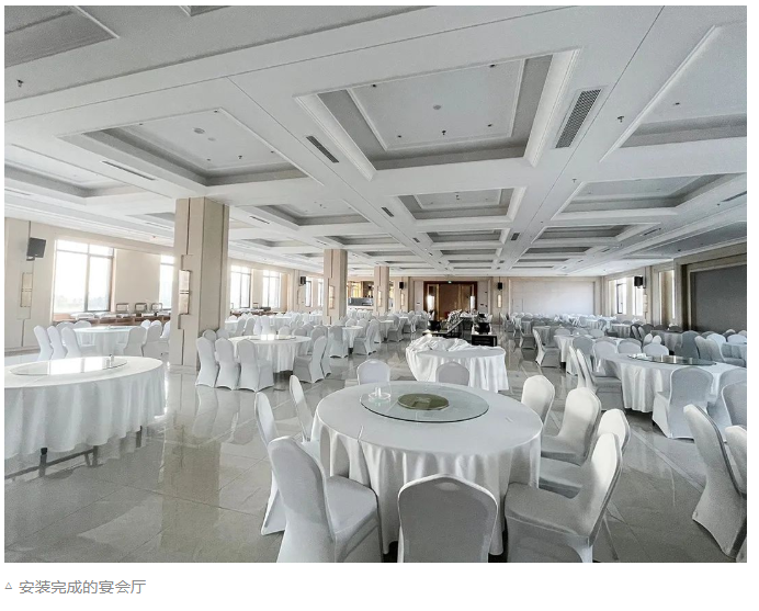宴會(huì)廳需滿足大中型集會(huì)、聚餐及慶典活動(dòng)等功能需求。宴會(huì)廳同樣采用了若干只M10固定安裝音箱好和若干臺(tái)MI系列數(shù)字功放。